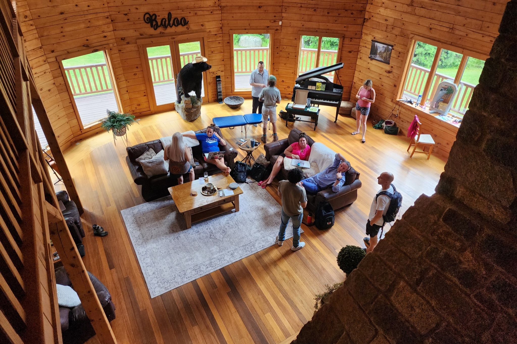 Immerse yourself in the golden glow of a true Connecticut lodge. Serenity Woods is defined by its stunning knotty pine craftsmanship, soaring ceilings, and panoramic views of the surrounding forest. From the grandeur of the Master Suite with its custom floors and iron scrollwork to the playful charm of the wilderness-themed bunk room, every inch of this estate is designed to balance rustic character with modern luxury. It is more than just a place to sleep—it is a secluded sanctuary where nature and comfort meet.